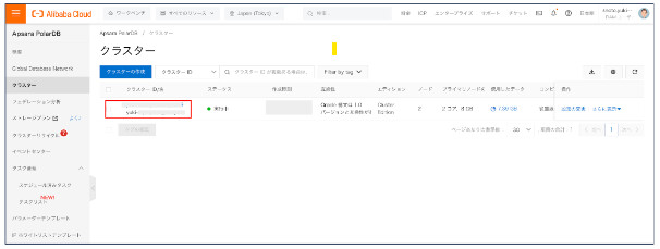 1 ) Alibaba CloudのPolarDBコンソールにアクセスし、左ペインの「クラスター」をクリックし、移行元のクラスタが存在するリージョンを開きます。