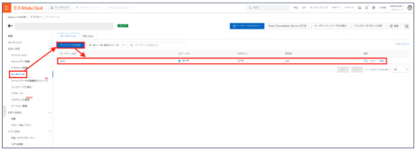 6 ) 「データベース」の作成をクリックし、移行先のデータベースを作成します。