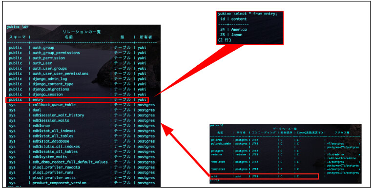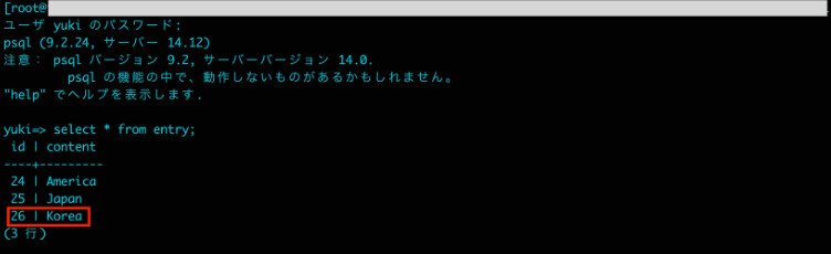 3 ) v2クラスタにログインし、テーブル情報を確認します。確認すると、Koreaが追加されており、アプリケーションが正常に動作していることが分かります。