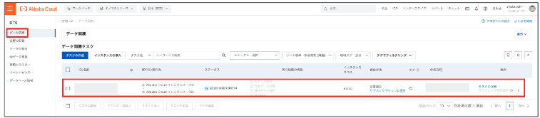 7 ) DTSコンソールにアクセスし、左ペインの「データ同期」をクリックし、「タスクの作成」をクリックします。