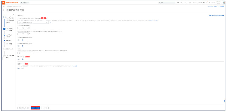 ※今回はデフォルト値でデータ同期タスクを作成します。必要に応じて適宜ご変更ください。