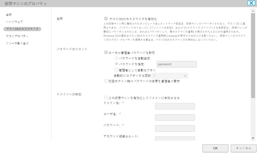 | guestOsCustomizeFlg | true(ゲストOSのカスタマイズを有効化) |