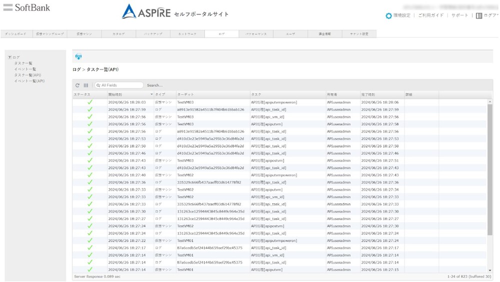 [ログ]-[タスク一覧(API)]で確認すると、問題なく動作していることが確認できます。