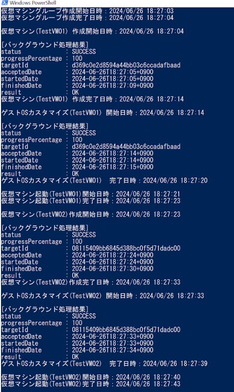 対象仮想マシンの指定はTestVM01同様に仮想マシン作成時に$vmId_TestVM02を定義することで指定します。