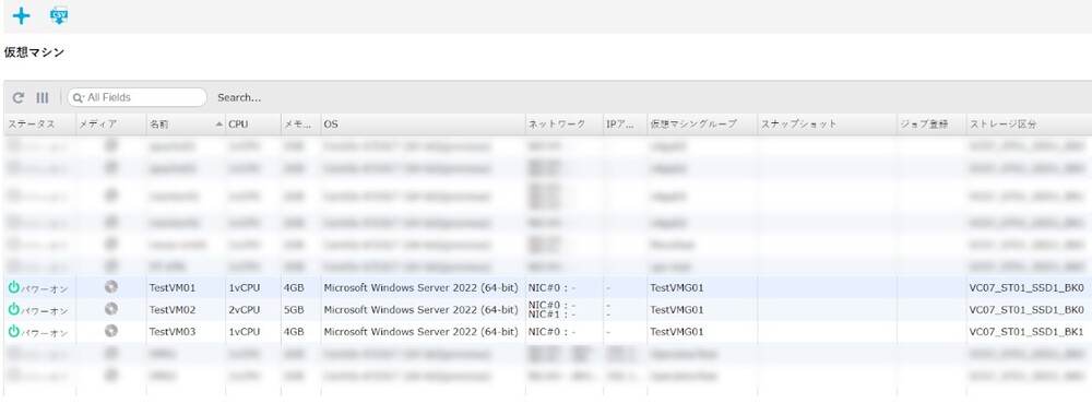 TestVMG01に3台の仮想マシンが作成されており、Windows2022で作成されていることがわかります。