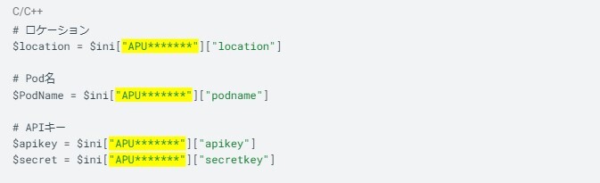 58行目~66行目で.iniファイルから必要な各変数を格納しています。