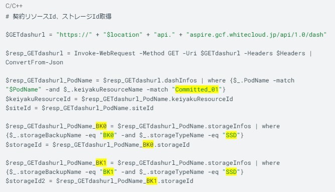 136行目~150行目で仮想マシンの作成先である契約リソースIDとストレージ区分を指定するためのストレージIDを取得します。