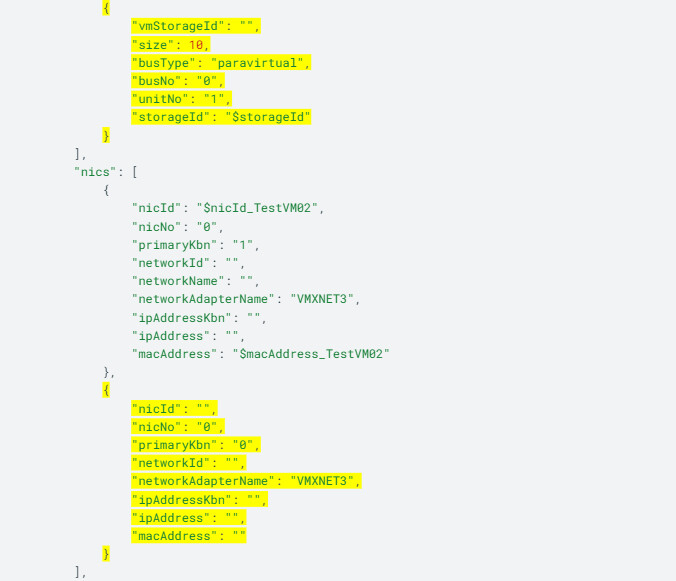 nicも同様に、nics内の"nicId"~"macAddress"を追加することで新規nicを追加することができます。
