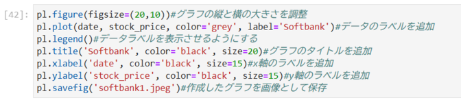 さあ!グラフ化をしてみましょう!方法は簡単で以下のようにコードをx軸とy軸の値を指定するだけで簡単に作成できます。