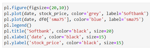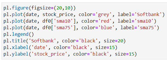このsma10 と sma75 を加えた株価のグラフを作成してみようと思います。