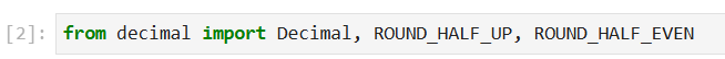 まずは値を四捨五入できるようにしましょう。自分で調べてみた結果、Python で四捨五入を行うためには、decimalモジュールというものを使うようなので、以下のコマンドを入力して使えるようにします。