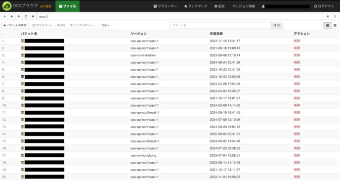 閲覧するOSSバケットをクリックして、同画面内にバケットを表示しながらフォルダやファイルが表示がされるので、複数のOSSバケットに対して、格納されているフォルダやファイルを確認したいといった場合に、1.0よりスムーズに行うことができるため、とても便利な印象でした。