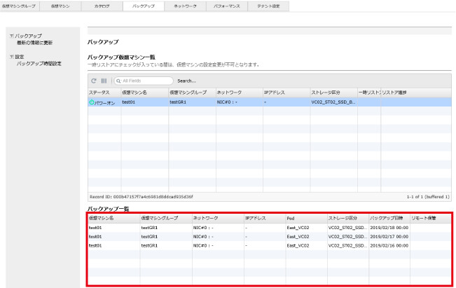 「バックアップ」タブをクリックし、リストアする仮想マシンをクリックします。