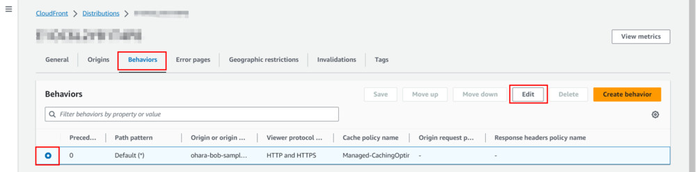 CloudFrontコンソールに戻り、対応するインスタンスの`Origins`管理タブにアクセスします。関連するS3データソースを選択し、`Edit`ボタンをクリックします。