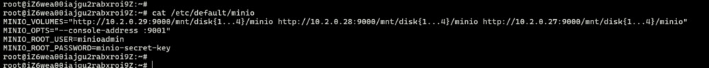 MINIO_VOLUMES="http://10.2.0.29:9000/mnt/disk{1..4}/minio http://10.2.0.28:9000/mnt/disk{1..4}/minio http://10.2.0.27:9000/mnt/disk{1..4}/minio"