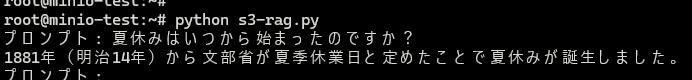 MinIOのObjectStorageができたら、早速RAGアプリケーションを試してみます。