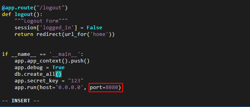 一方、app.pyでアプリケーションのPortを8080に変更します。この操作は任意であり、デフォルトのPort5000を使用することも可能です。このPortはセキュリティグループの設定にてアクセス許可されていることが前提となります。