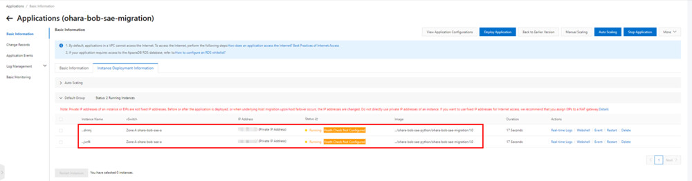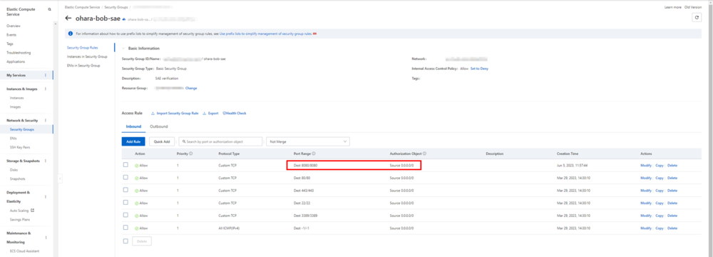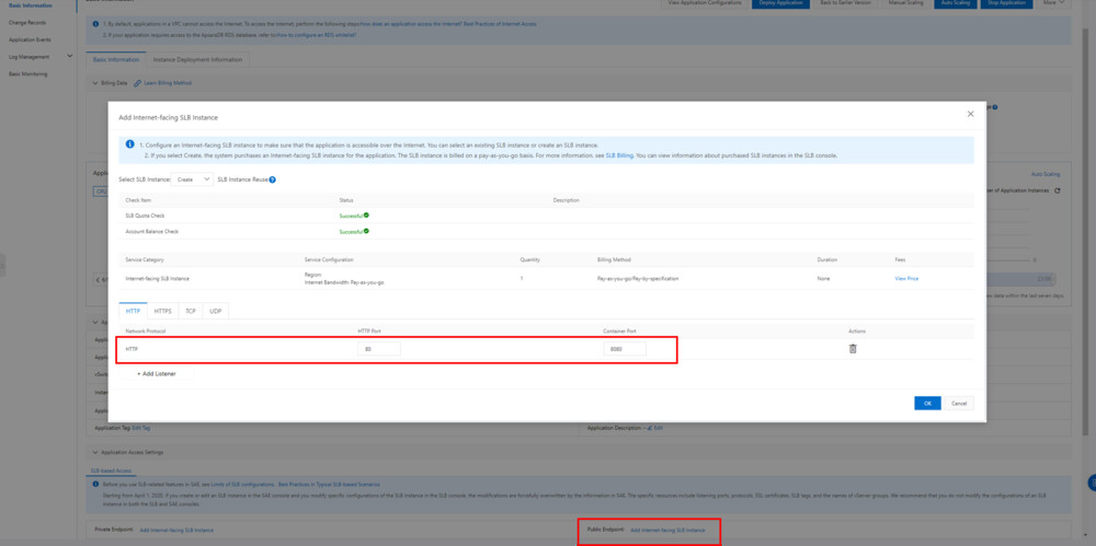 Webブラウザでサービスにアクセスするために、インターネットに面したSLBインスタンスをバインドします。ECSインスタンスから実行中のサービスでSLBサービスを使用している場合、SAEインスタンスを既存のSLBインスタンスにバインドすることも可能です。
