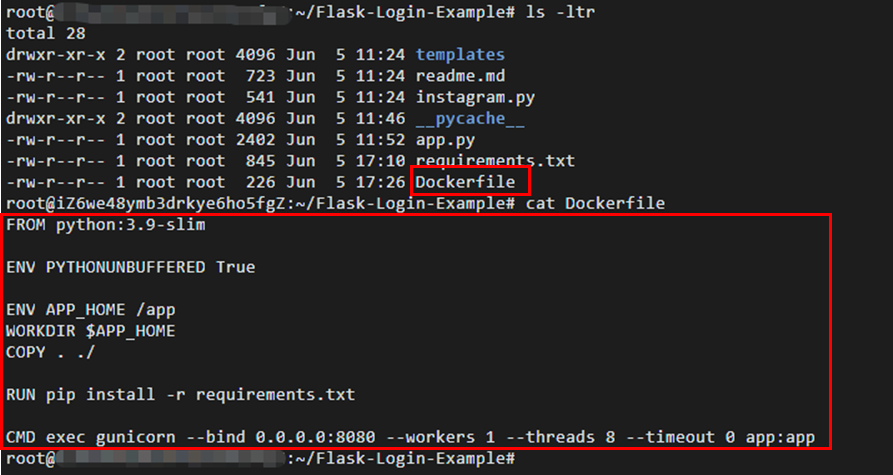 カスタマイズしたイメージのDockerfileを用意する。SAEの実行環境に応じて、python:3.9-slimをベースイメージとして使用します。gunicornのコマンドはプロジェクトに応じて変更することができます。