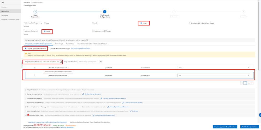 Container Registry(ACR)は、カスタマイズされた画像を管理するために使用します。SAEとACKサービスは、それらのイメージを直接使用することができます。