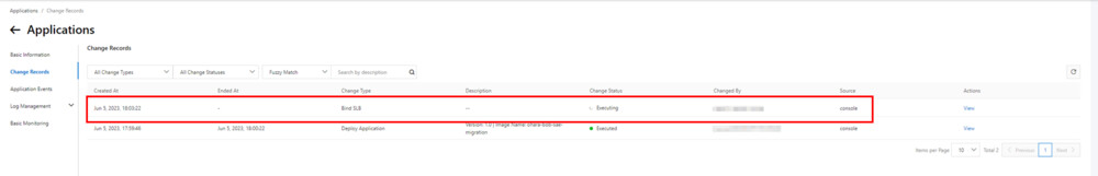 実行過程は、変更記録に表示されます。操作が正常に実行されると、IPアドレスが取得できます。