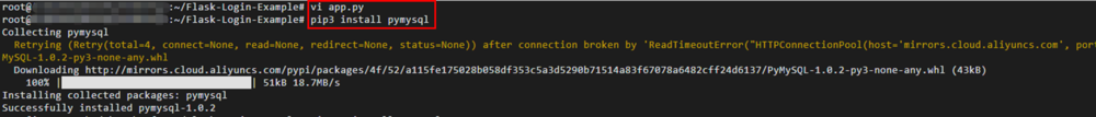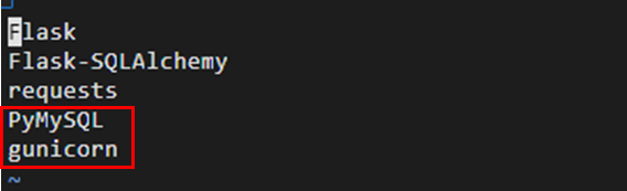 MySQLへの接続はPyMySQLで実装されているので、requirements.txtに追加し、pipコマンドで関連パッケージをインストールします。
