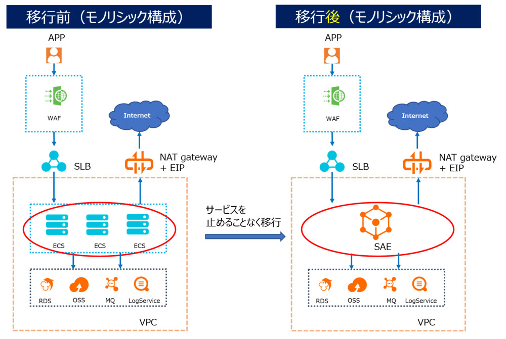 このSAEは、マイグレーションを手厚くサポートしており、ECS上にある本番環境用のアプリケーションでもスムーズにSAEへ移行することができます。この移行作業中でもサービスを止めることなく利用することが可能です。