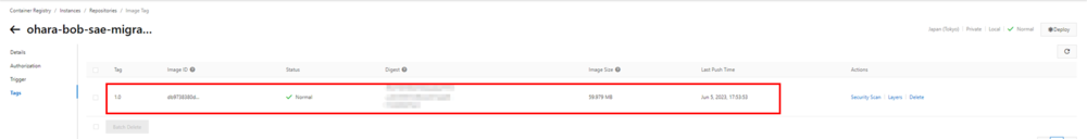 完了すると、構築されたカスタマイズされたイメージがイメージリストに表示されます。ACRリポジトリにプッシュする前に、ローカルでイメージを実行することが推奨されます。問題があれば発見して修正することができます。