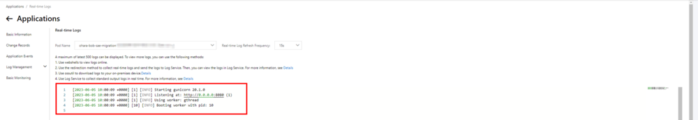 リアルタイムのログから、ターゲットPortでアプリケーションが正常に動作していることがわかります。