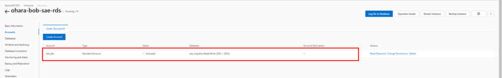 アカウント情報の確認と同時に、データベースの権限も更新されます。