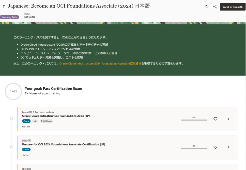 この資格は、OCI関連の資格の中で最も易しく、学習の入口に最適です。また、受験料が無料かつオンライン上で受験することができるというところも魅力です。