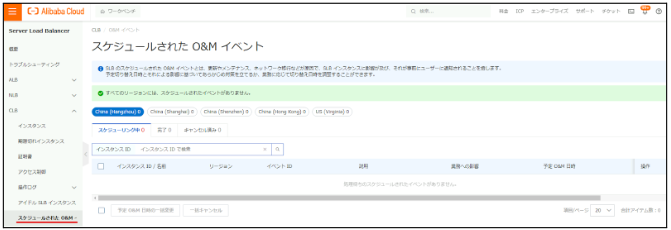 スケジュール(=計画)されたO&Mイベントとは、Alibaba Cloudが計画した更新、メンテナンス、ネットワーク移行を意味します。今回のアップデートでは、スケジュールされたO&Mイベントを利用ユーザ側で実行タイミングを指定することができるようになりました。これにより、利用影響があるスケジュールされたO&Mイベントの場合、利用ユーザ側で最も影響が少ないタイミングに実行するよう指定することができます。ただし、この機能は、2025/2/1現在、中国 (杭州)、中国 (上海)、中国 (香港)、米国 (バージニア) リージョンにあるCLBでのみ利用することができます。
