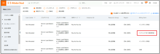 日本語版であればパブリックIP保有料金について「パブリックIPの保持料金」と表記されます。