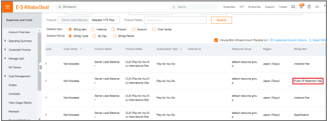 英語版であればパブリックIP保有料金について「Public IP Retention Fee」と表記されます。