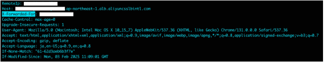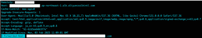 ALBに対して、クライアント側から[curl -H “X-Forwarded-For: クライアントIP” http://xx.xx]コマンドを使ってXFFヘッダを付与した状態でアクセスしてみます。出力結果を見ると、XFFヘッダが削除されていることが分かります。