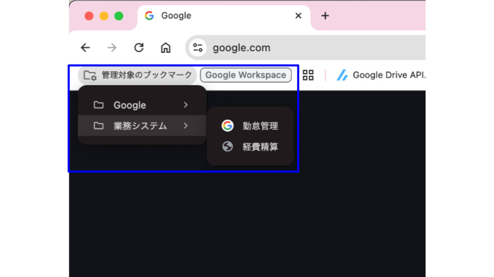 *下記サンプルあり | 推奨。 業務で頻繁に使う社内システムやWebサービスへのリンクを「管理対象ブックマーク」として管理者が設定・配布できます。ユーザーは自分でブックマークを探す手間がなくなり、必要な情報へ素早くアクセスできます。部署ごとに異なるブックマークを設定することも可能です。 |
