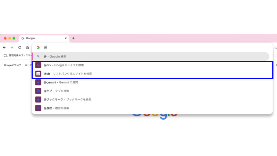 例2)アドレスバーからの直接検索機能の拡張 - Googleドライブと弊社法人サイトの検索を追加しています