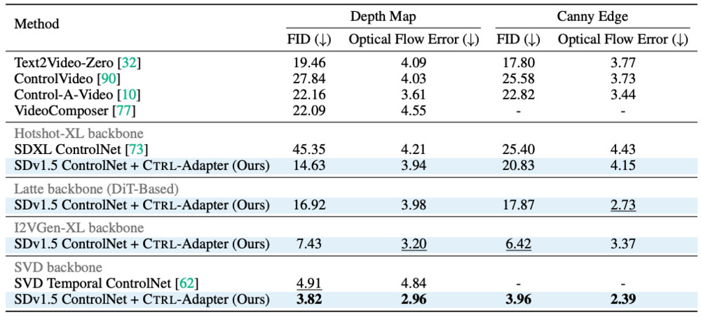 画像生成タスクでは、COCOデータセットにおいて事前学習済みのControlNetと同等またはそれ以上の性能を達成しました。動画生成タスクでは、DAVIS 2017データセットにおいて、全ての既存手法を上回り最先端の精度を達成し、さらに計算コストも大幅に削減しました(A100 80GB GPUでの学習時間が10 GPU hours未満) 。