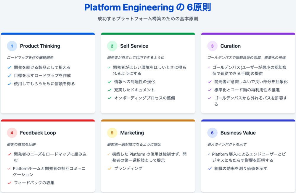 プラットフォームエンジニアリング成功のポイントは下記と言われています。