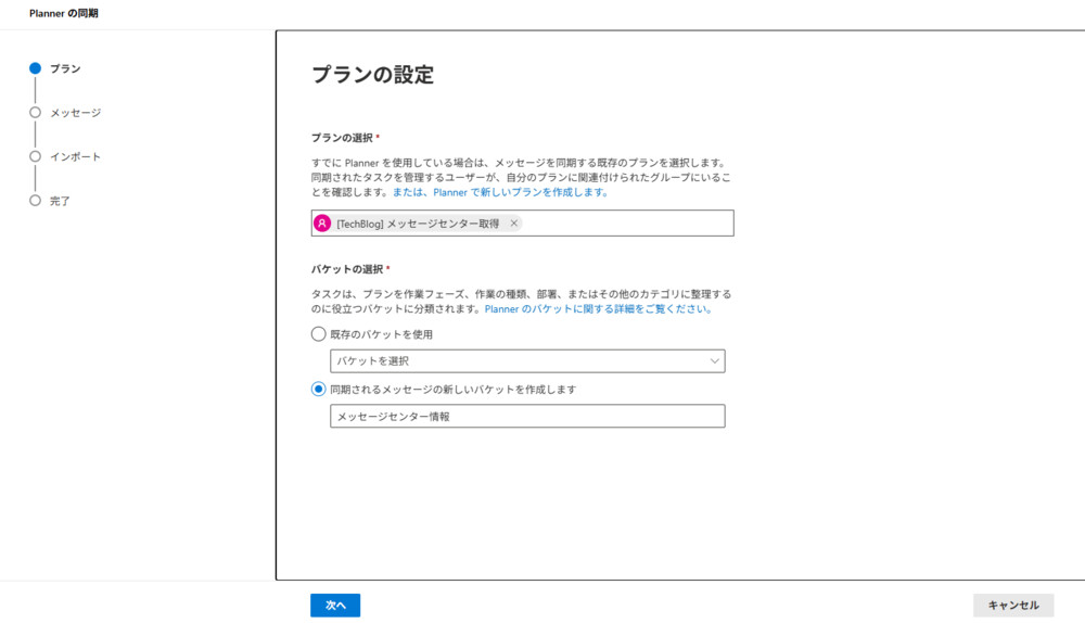 既存のバケットがない場合は「同期されるメッセージの新しいバケットを作成する」で問題ないです。