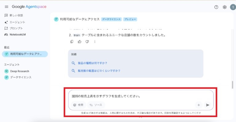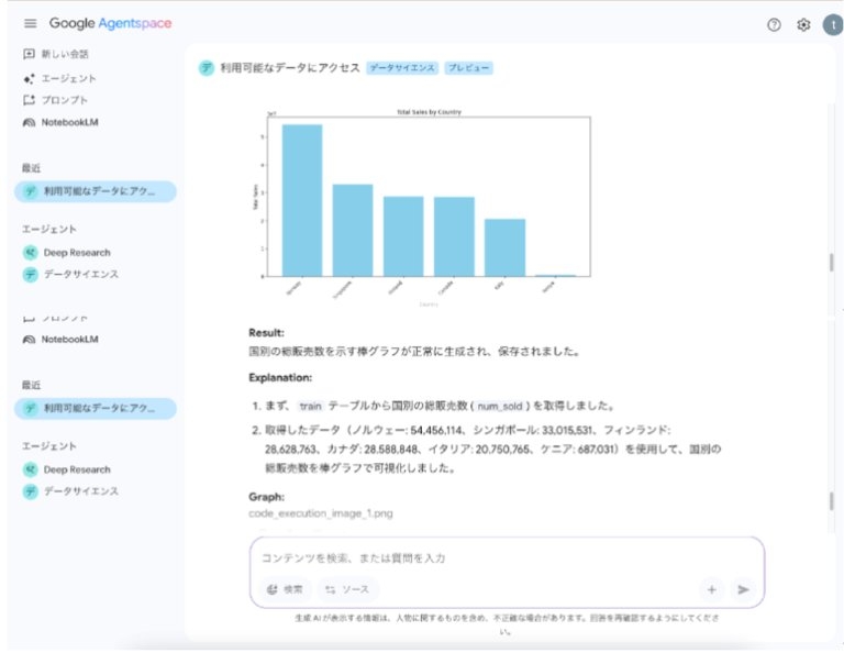 このように、Agentspace上のエージェントに指示を出すだけで、データ分析から施策立案、効果予測といったPDCAサイクルを高速で回すことが可能になるのです。