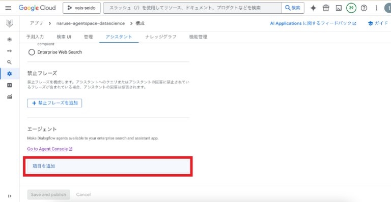 8. 下にスクロールして、「エージェント」の「項目を追加」をクリックします。