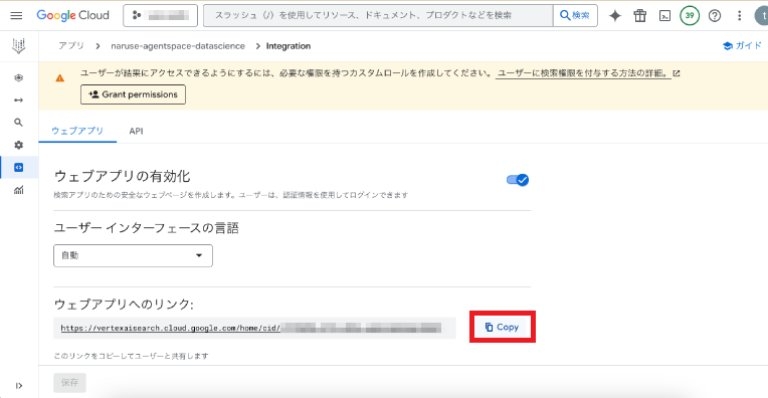 2. 「ウェブアプリへのリンク」で「Copy」をクリックします。