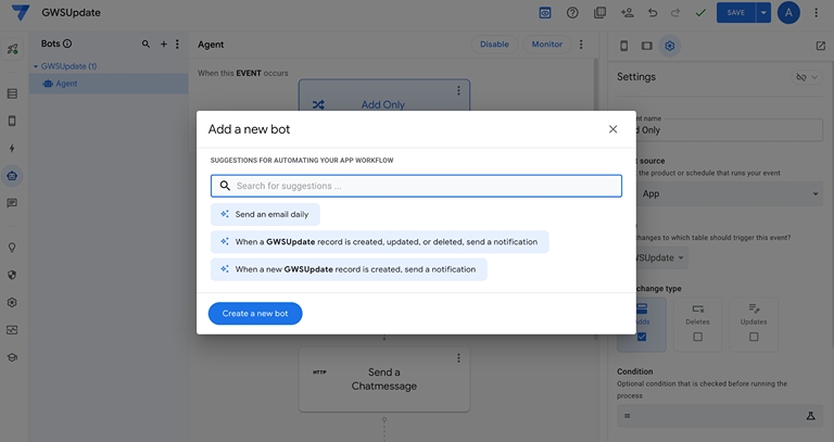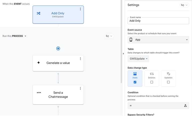 アップデート記事の要約と Google Chat のスペースへの通知は、AppSheet Automation を使用して実装します。