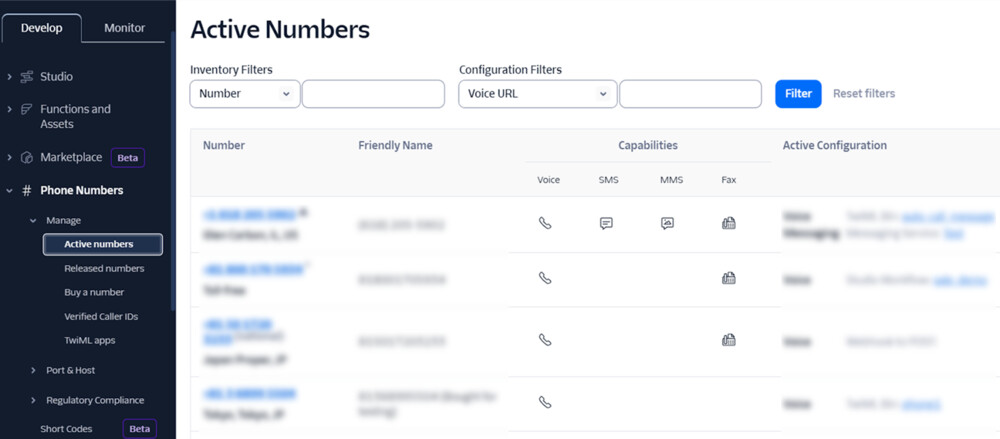 3.送信に使用するアメリカの電話番号を用意します。まだ電話番号を購入していない場合は、「Twilio上で日本とアメリカの電話番号を購入する方法(2025年1月版)」を参考にしながら番号を購入してください。購入した番号をメモしておきましょう。