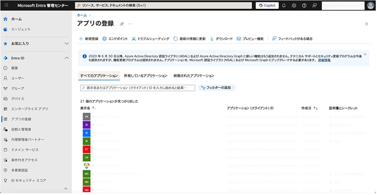 https://entra.microsoft.com/ に全体管理者権限でアクセス