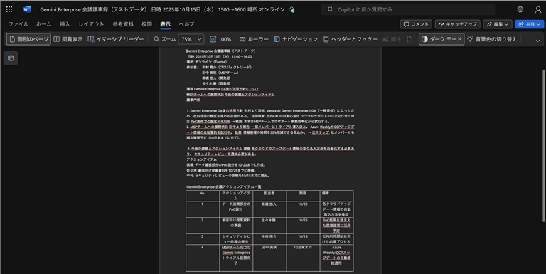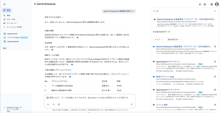 議事録や設計資料といった日常業務のドキュメントを AI エージェントが検索・要約