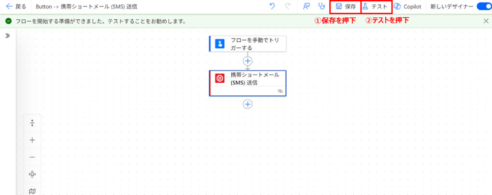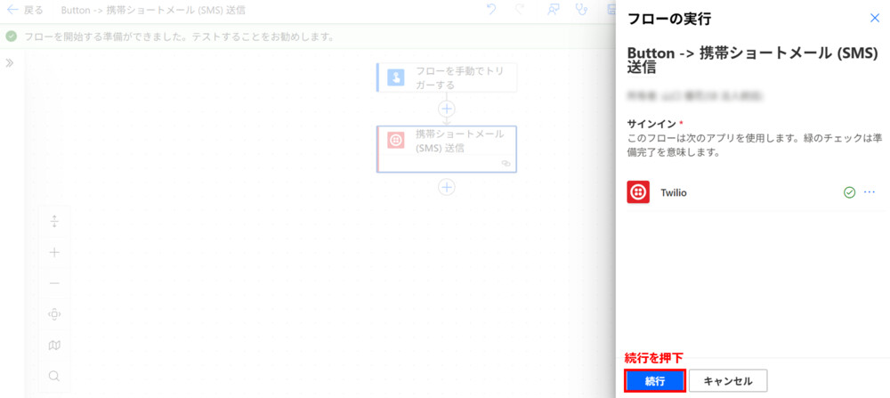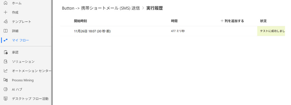 11.フローが実行されると、実行完了のテキストが表示されます。