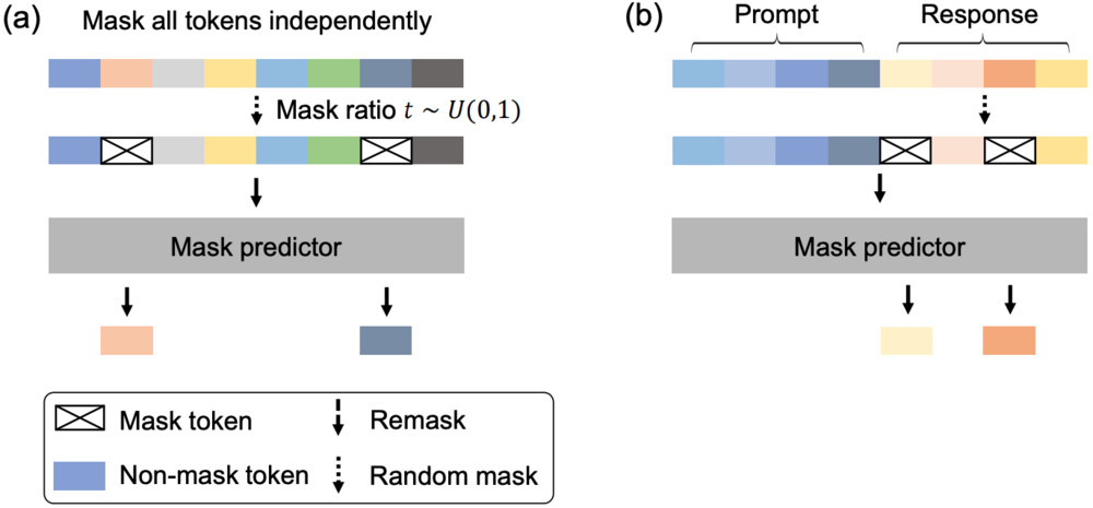 さらに、トークンの位置に依存せず、確度が高いトークンから断片的に復元することで、生成方向の制約を弱め、逆方向推論への対応を実現します。例えば、句読点や頻出語など確度の高い部分から先に復元し、確度の低い箇所を後から埋める生成が可能になります。