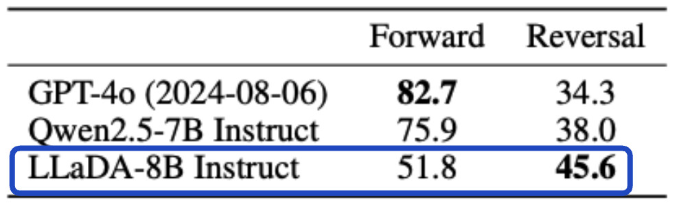 また、従来のLLMは、前のトークンや文章のみを情報として次のトークンを予測する自己回帰モデルを生成に用います。そのため、次のトークンを予測する順方向推論(Next token prediction)が得意である一方、前のトークンを予測する逆方向推論の弱さが課題とされています。